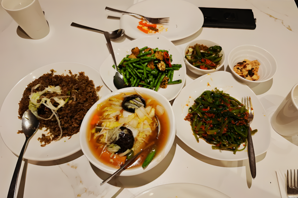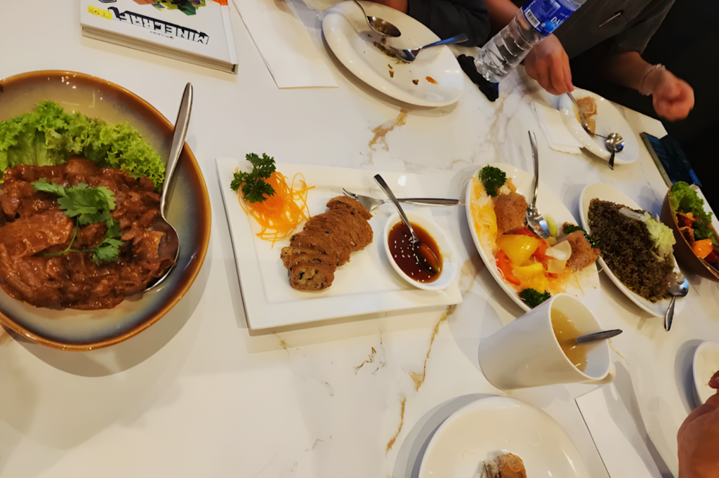 However, because the dining room was at full capacity, the noise level got pretty high. It’s definitely a lively, vegan friendly environment. One quick personal observation—the AC was quite strong near the center of the room, so I definitely needed my jacket to stay comfortable. The overall vibe is spirited and communal, filled with large families and groups sharing massive plates of food. It doesn’t feel like a quiet, stuffy vegetarian restaurant; it feels like a bustling, joyful family dinner.